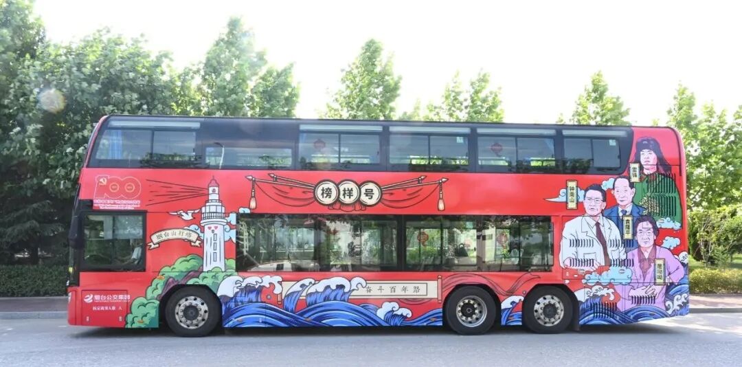 为庆祝建党100周年,向党的生日献礼,7月1日,烟台市委组织部与烟台公交集团联手打造的“红心向党·榜样力量”——17路“榜样号”双层巴士,满载乘客从山东商务职业学院始发,一路沿滨海路驶向火车站,为烟台海岸画出一道靓丽的红色风景线。