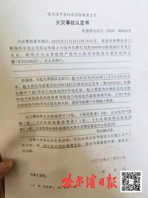 哈市两家民营公交企业丰达公交客运有限公司、浩达客运汽车有限责任公司此前已分批次购买了100台亚星公司车辆,且全部参与运营。鉴于上述认定结果,